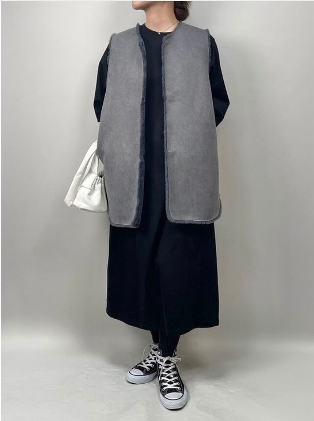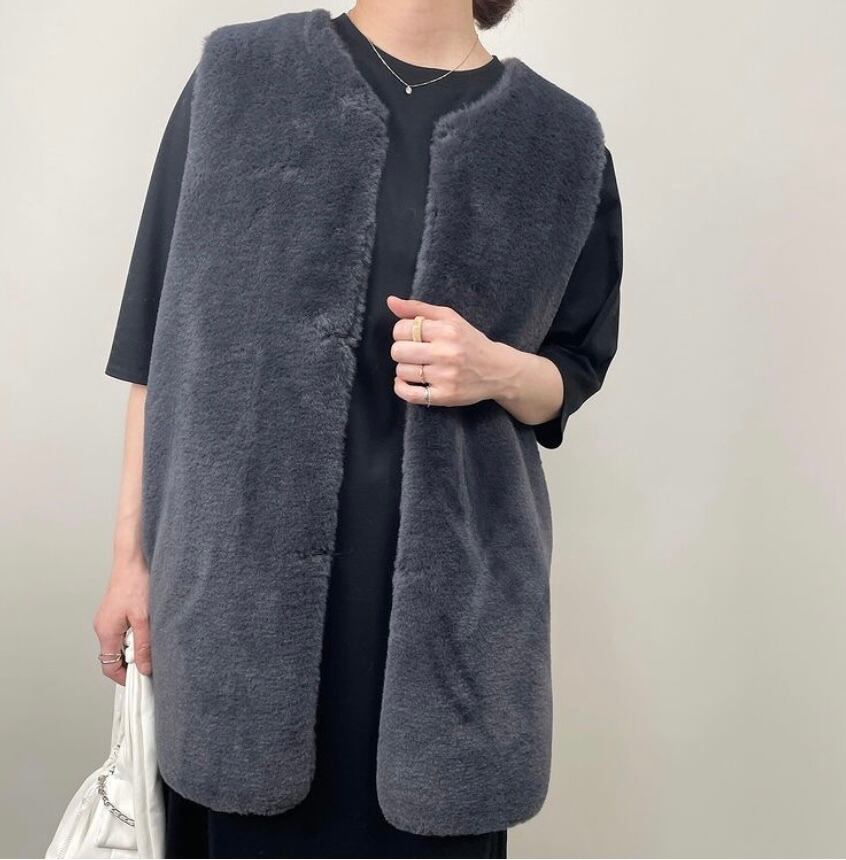 【QTUME フェイクムートンミドルジレ】