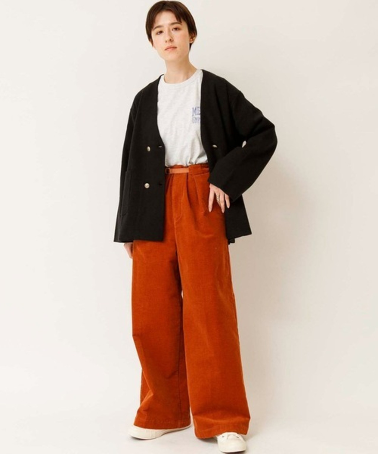着丈を調節しているためオーバーになり過ぎずすっきりとした印象で着用頂けます。