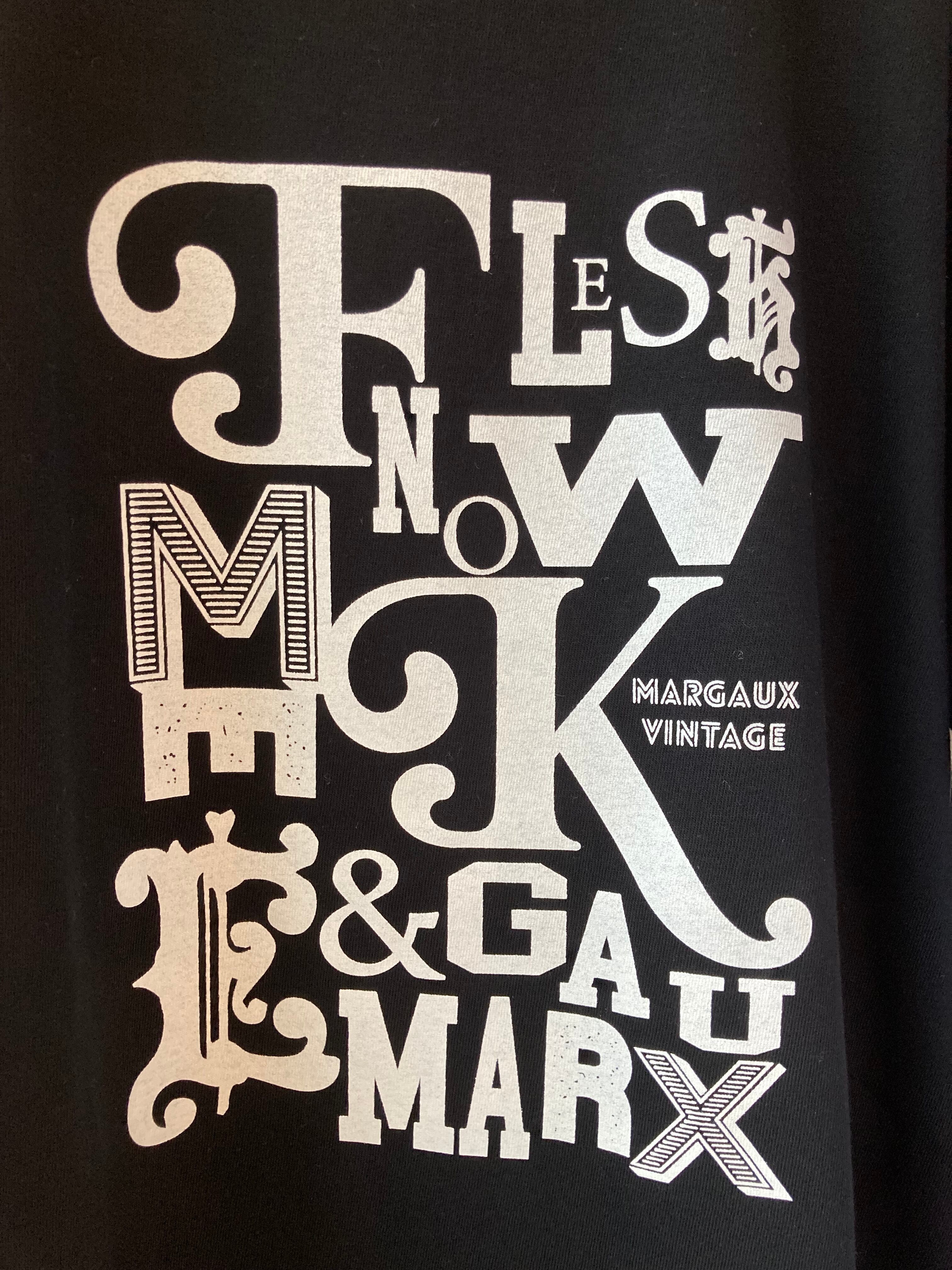 色んな書体のロゴが沢山散りばめられていてとてもかわいいTシャツです。